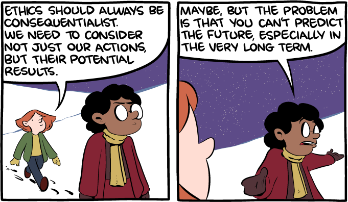 canโt be a complete ื ืขืจ, acting without thinking, but canโt be an ืืืฉ ืืืืืช; need to ืกืืื ืขื ืืณ. Otherwise will end up ืืจืฉืืข, will do ืจืฉืขืืช even if donโt intend to. Human beings are not smart enough for pure consequentialism